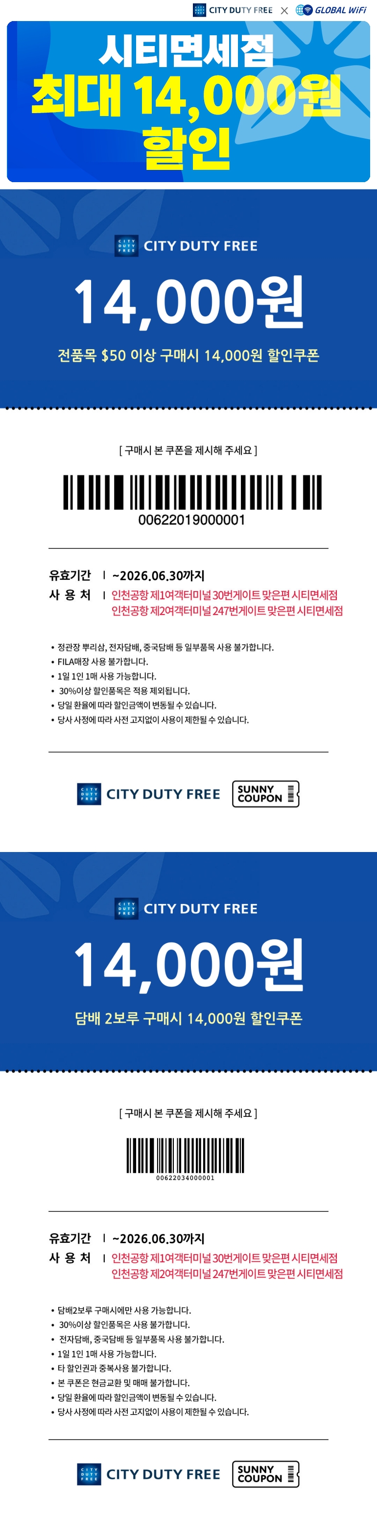 인천공항 시티면세점 최대 14,000원 할인